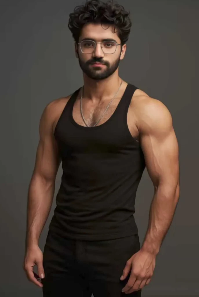 A cinematic portrait of a young South Asian man sitting confidently in a dramatic golden light. He wears retro-style round sunglasses, a wavy-patterned dark brown shirt with teal and beige tones, a gold chain around his neck, and a modern black watch on his wrist. His pose is stylish and bold, with one fist gently […]